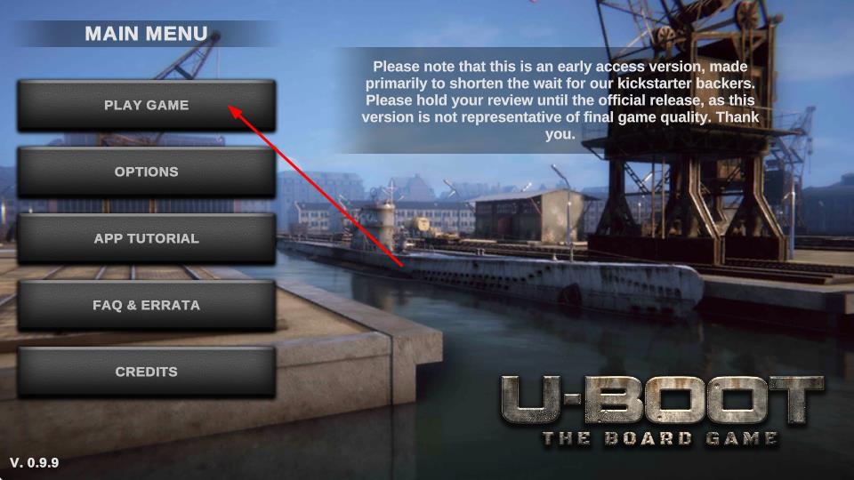1、打開(kāi)游戲進(jìn)入主界面后點(diǎn)擊【PLAY GAME】按鈕,在潛艇選擇界面點(diǎn)擊【U-99號(hào)】圖標(biāo)進(jìn)入戰(zhàn)前準(zhǔn)備場(chǎng)景。