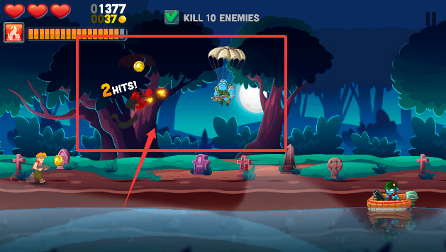 1、核心玩法圍繞橫版射擊展開,關(guān)卡中設(shè)有多種地形障礙,玩家需要靈活走位躲避攻擊,精準(zhǔn)射擊消滅喪尸。