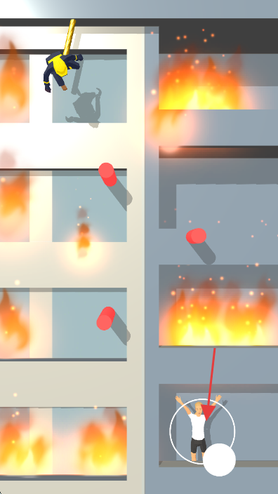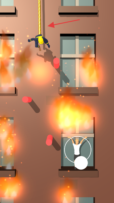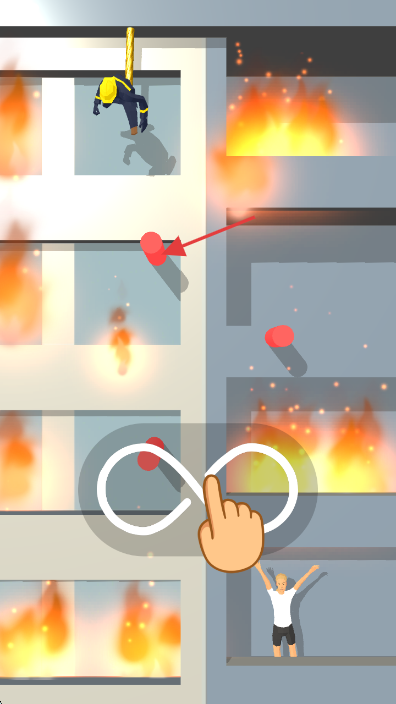 1、點(diǎn)擊屏幕上的無(wú)限符號(hào),操控消防員沿繩索下降,避開(kāi)火焰和紅色障礙物。