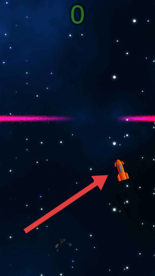 3、飛行階段,跟隨箭頭指引操控火箭移動,躲避紫色障礙,在星際空間中保持飛行,積累分數(shù),完成挑戰(zhàn)。
