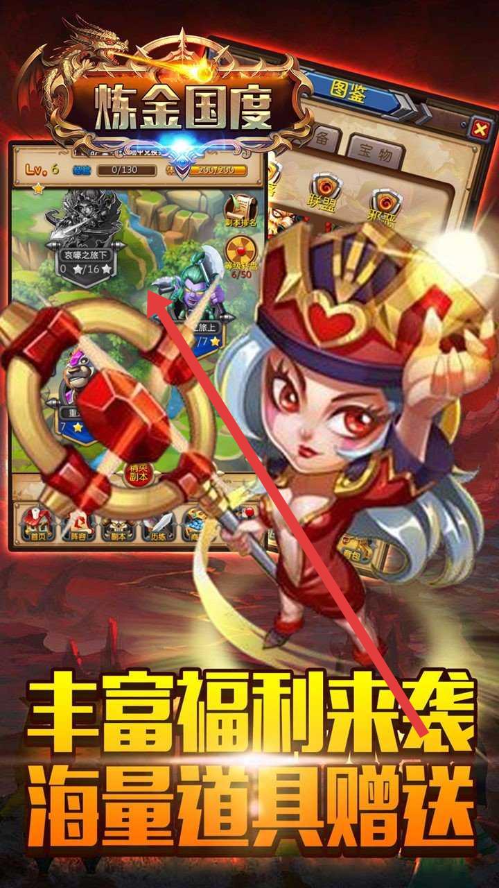 1、進入【煉金國度】,跟隨箭頭指引,點擊對應(yīng)關(guān)卡,參與“裂隙之旅下”等冒險,獲取福利與道具,推進主線。