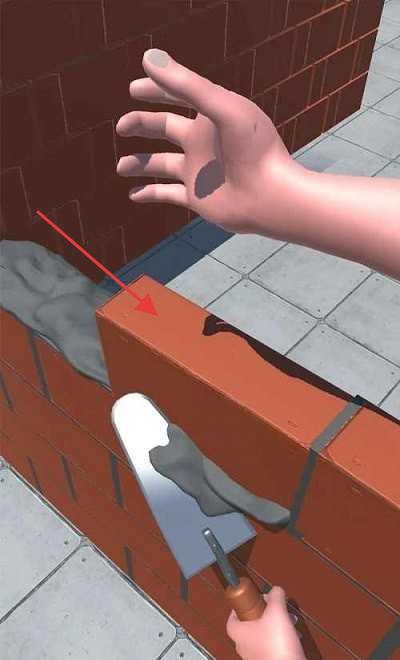 3、砌墻時(shí)放置紅磚,調(diào)整位置,配合灰漿固定磚塊。