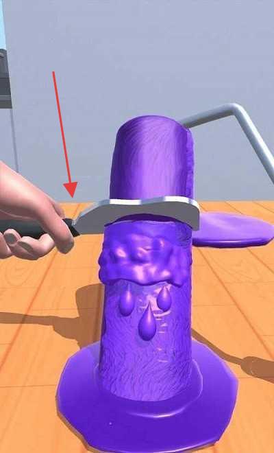 1、使用工具切割紫色黏液柱,沿對(duì)應(yīng)位置平穩(wěn)操作,完成塑形步驟。