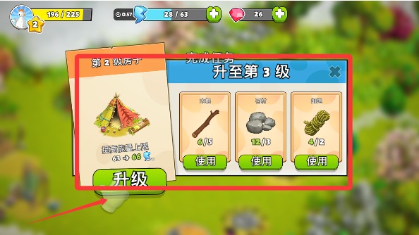 3、收集到一定量的物資后,可升級(jí)角色的房屋,開(kāi)放更多有趣的游戲內(nèi)容。