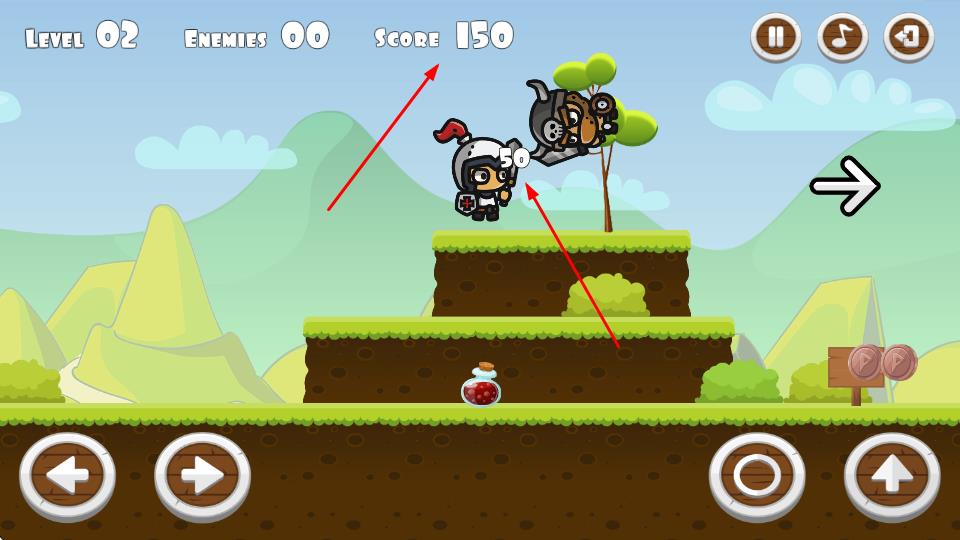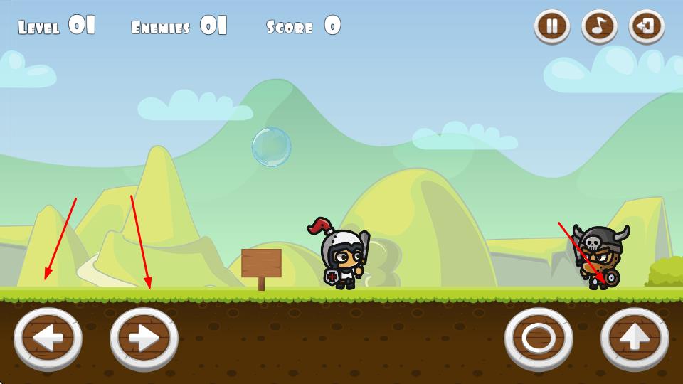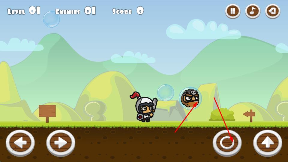 2、靠近敵人時,點擊攻擊按鍵,釋放近戰(zhàn)攻擊,擊敗敵人,積累分數(shù)。