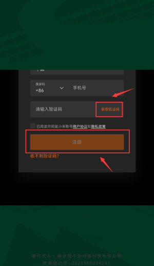 3、點擊獲取驗證碼,輸入驗證碼,然后點擊注冊即可。