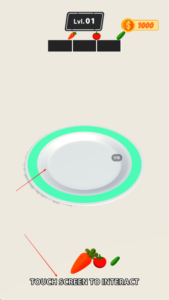 2、切菜完成后進(jìn)入擺盤(pán)界面,從多個(gè)餐盤(pán)樣式中選擇心儀款式,拖動(dòng)處理好的果蔬到盤(pán)中,自由調(diào)整位置與排列造型。