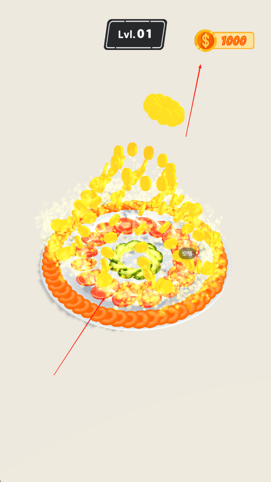 3、完成擺盤(pán)后提交菜品,系統(tǒng)根據(jù)刀工精細(xì)度與擺盤(pán)美觀度評(píng)分,評(píng)分越高獲得金幣越多,可解鎖更多食材與餐具。