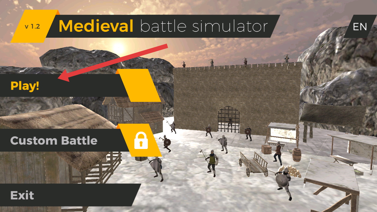 1、在中世紀(jì)戰(zhàn)士戰(zhàn)爭模擬的游戲主界面,點擊【Play】的按鈕,進(jìn)入戰(zhàn)役選擇或戰(zhàn)斗準(zhǔn)備階段。