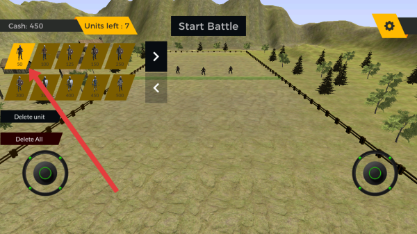 2、在部隊部署的界面,操控者需要點擊左側(cè)【50】金幣的基礎(chǔ)士兵卡牌,招募該兵種加入戰(zhàn)斗。