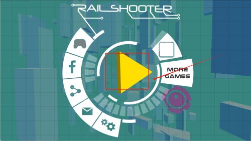 1、點(diǎn)擊主界面中央黃色播放鍵開始游戲,通過周圍功能圖標(biāo)可進(jìn)行社交分享或查看更多游戲推薦,快速進(jìn)入射擊挑戰(zhàn)。