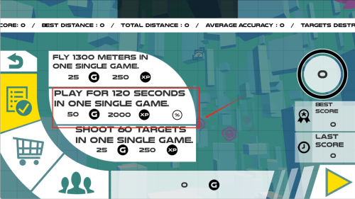 2、在任務(wù)界面選擇指定挑戰(zhàn)目標(biāo),如單局游戲堅(jiān)持120秒或擊毀60個(gè)目標(biāo),完成后可獲得對(duì)應(yīng)GP和XP獎(jiǎng)勵(lì)。