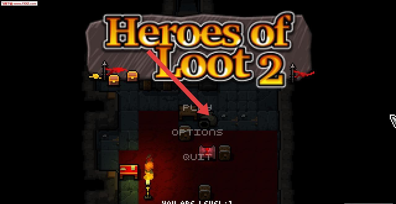 2、在標(biāo)題界面點(diǎn)擊【PLAY】,正式進(jìn)入《Heroes of Loot2》冒險(xiǎn),若需調(diào)整設(shè)置選【OPTIONS】,想退出點(diǎn)【QUIT】。