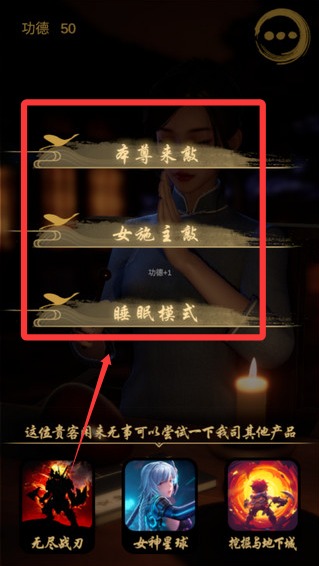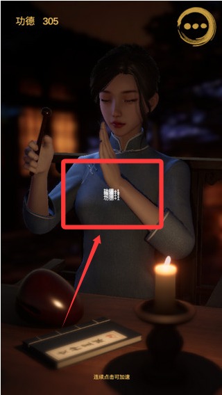 2、與女施主的互動(dòng)穿插于游戲流程之中,不僅增加了內(nèi)容的趣味性,還使得敲擊過(guò)程更具人情溫度。