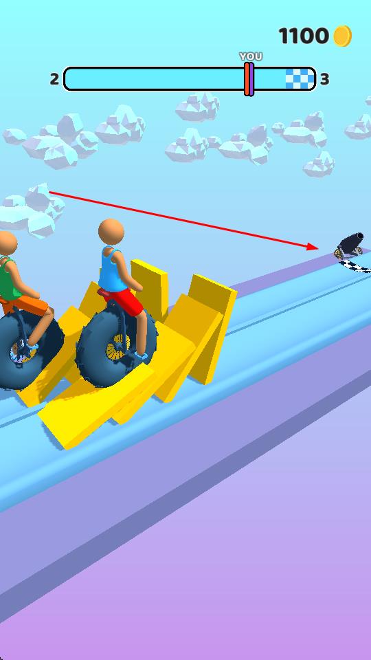2、賽道中會(huì)出現(xiàn)黃色道具,接觸可獲增益,像加速、改變賽道優(yōu)勢(shì)等,助力競(jìng)賽。