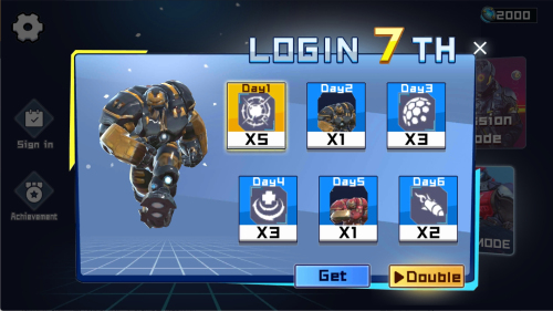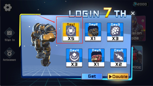 1、啟動游戲進(jìn)入登錄界面,點(diǎn)擊LOGIN 7 TH領(lǐng)取每日獎勵,首日可獲得5個(gè)強(qiáng)化道具,連續(xù)登錄獎勵更豐厚。