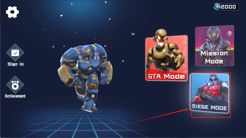 3、主界面選擇GTA Mode或Mission Mode開啟戰(zhàn)斗,操控機(jī)甲使用技能擊敗敵人,注意收集場景中的資源提升戰(zhàn)力。