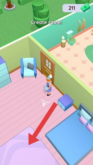 1、從場景(室內(nèi)布置、角色動作)及“Createtable”(創(chuàng)建桌子)的提示,玩家需進行如布置、制作等經(jīng)營操作。
