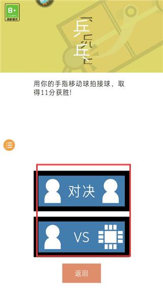 2、我們這里選擇一個(gè)游戲開始,比如說乒乓球,可以選擇和人機(jī)對戰(zhàn)或者玩家對戰(zhàn)。