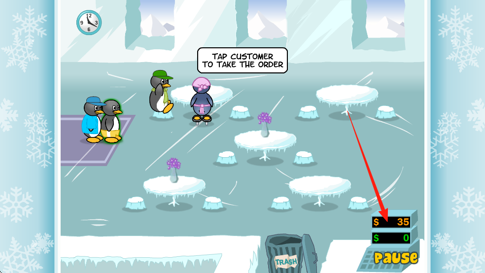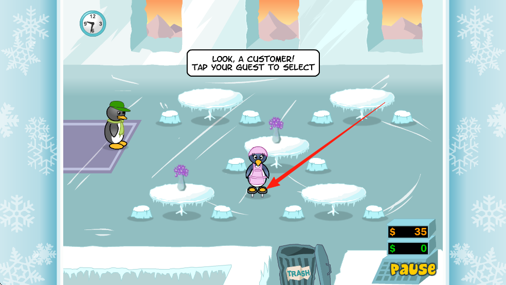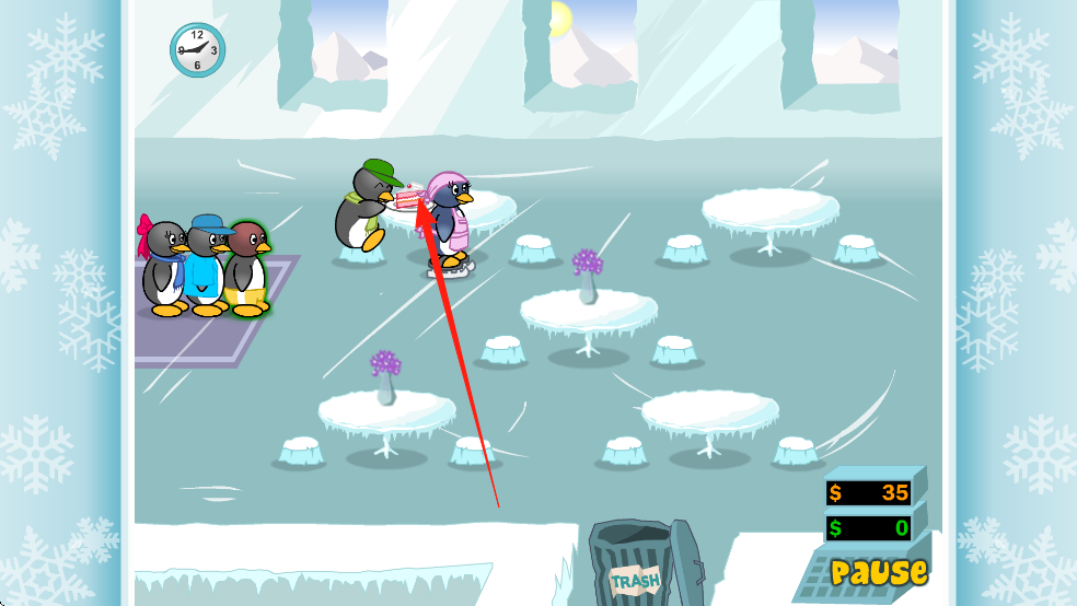 1、日常經(jīng)營(yíng)操作:玩家需點(diǎn)擊顧客快速安排就座,顧客招手時(shí)及時(shí)上前點(diǎn)餐,隨后操控企鵝員工取餐上菜,全程考驗(yàn)手速與反應(yīng)力。