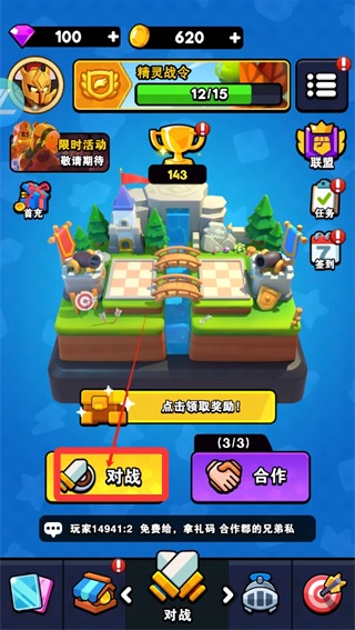 1、開始游戲后,選擇下方的“對戰(zhàn)”模式,進入競技場開始戰(zhàn)斗。