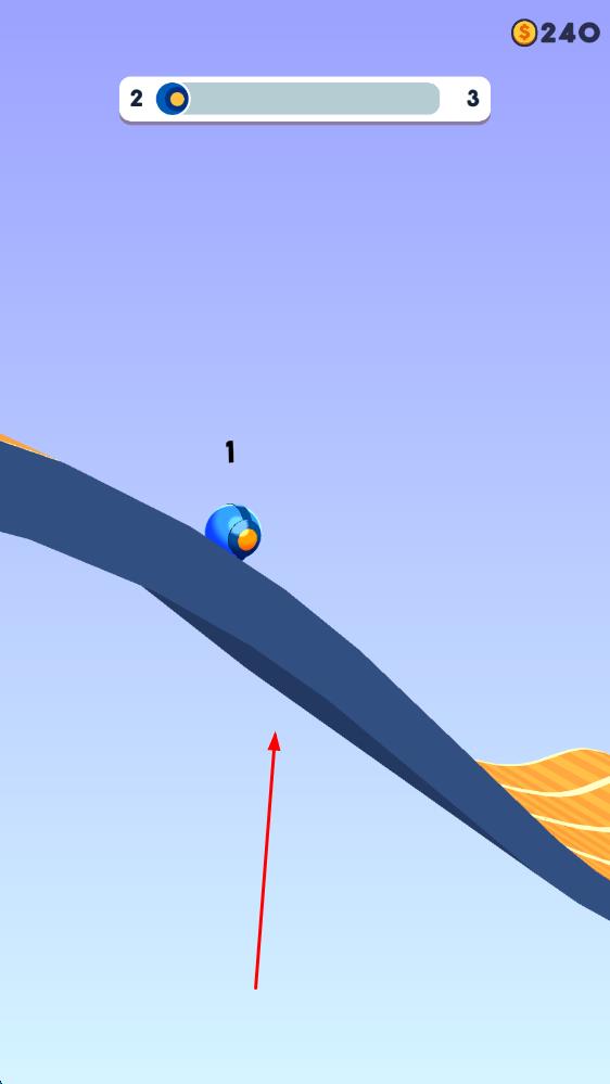 1、進(jìn)入游戲,操控機(jī)械球在起點(diǎn)蓄勢待發(fā),面對平緩路段點(diǎn)擊屏幕控制前進(jìn),遇到障礙物時滑動屏幕跳躍躲避,開啟跑酷之旅。