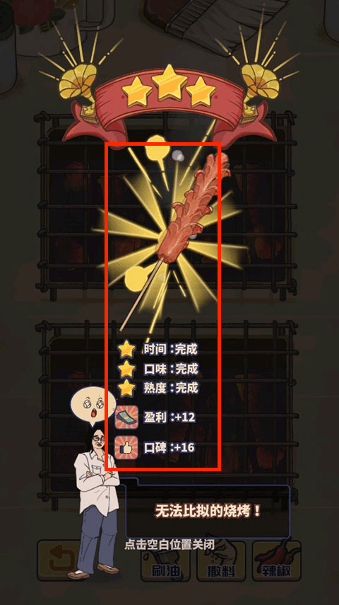 3、完成后燒烤可為店主帶來收益。