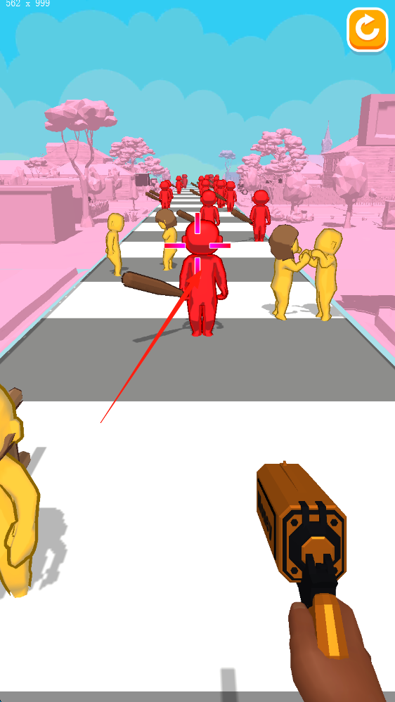 1、控制手中武器,瞄準(zhǔn)紅色敵人射擊,消滅他們,同時(shí)注意保護(hù)黃色人群。