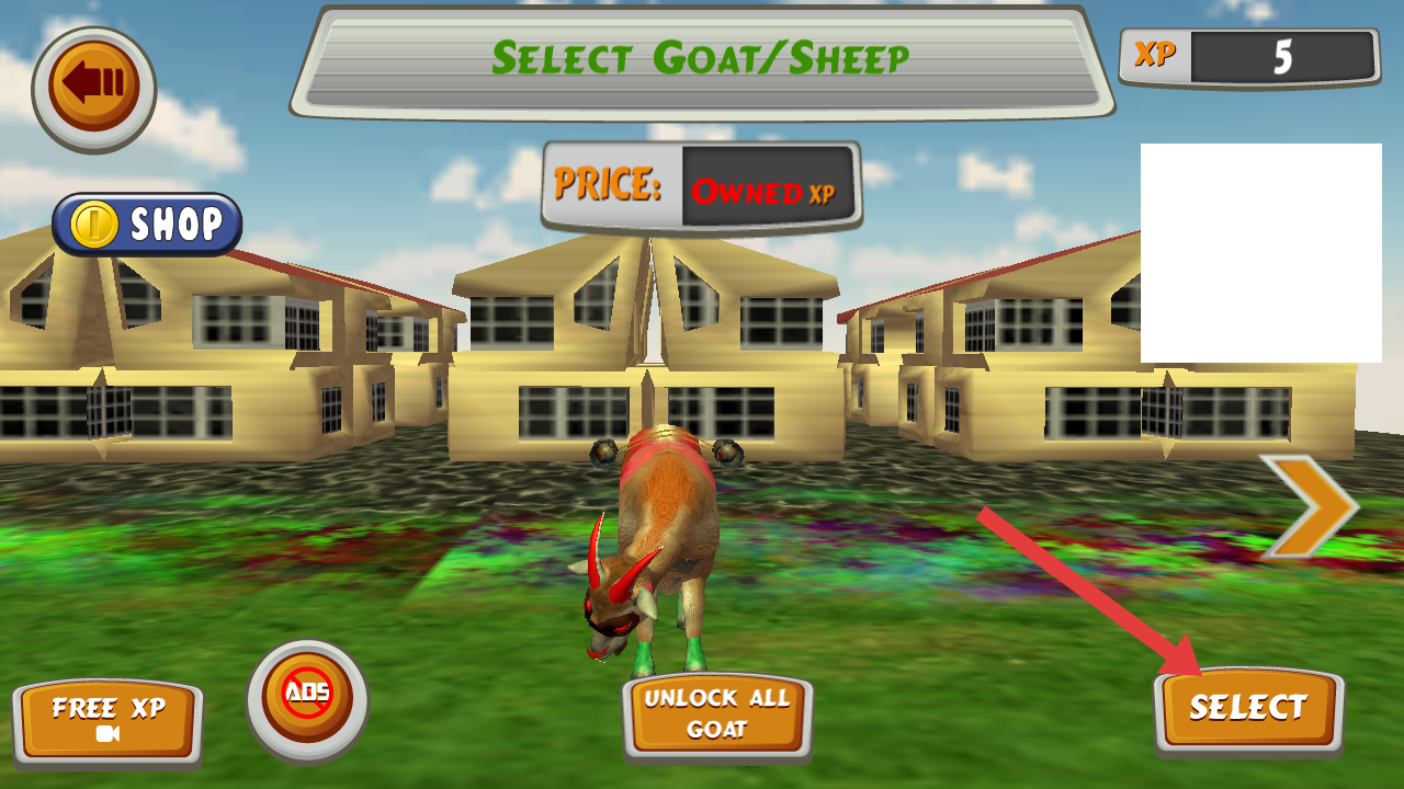 2、在角色選擇界面,點擊右下角【SELECT】按鈕,選定當(dāng)前展示的山羊角色,進(jìn)入加載環(huán)節(jié)。