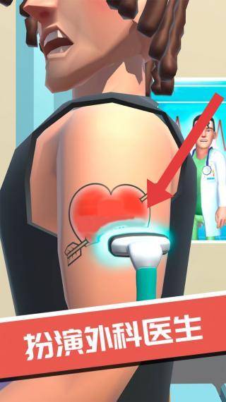 3、呈現(xiàn)玩家扮演外科醫(yī)生,用工具處理患者手臂紋身相關(guān)狀況的場(chǎng)景,“扮演外科醫(yī)生”點(diǎn)明游戲玩法,玩家可模擬外科診療操作。