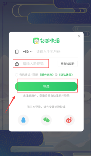 2、第二步將收到的驗證碼填寫,然后點擊登錄即可游玩。
