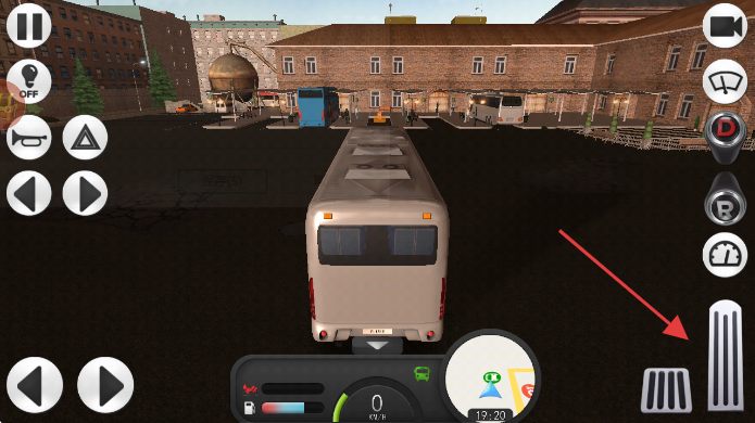 3、點擊屏幕右側的油門踏板圖標,給巴士提供動力,驅動車輛在場景中行駛,完成運輸?shù)热蝿铡?