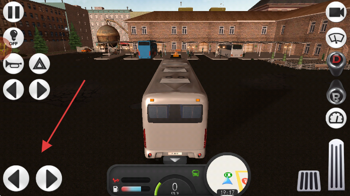 2、進入駕駛界面后,通過屏幕左側的左右箭頭按鍵,控制巴士的轉向,規(guī)劃行駛路線,準備出發(fā)。