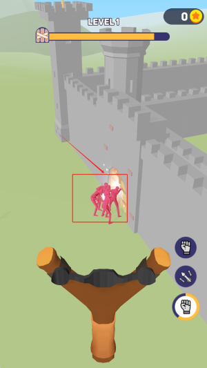 3、向上滑動釋放彈丸,拋物線擊中紅色目標(biāo)觸發(fā)爆炸,擊碎磚石可收集額外獎勵資源。