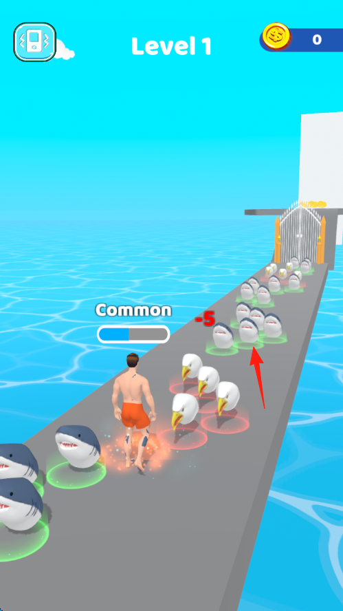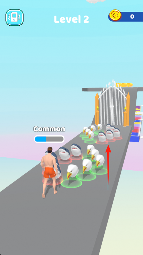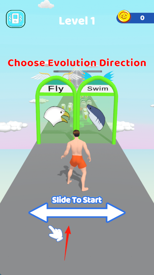 3、進(jìn)入Level2,組合吞噬(鯊魚+海鷗),解鎖新形態(tài),沖刺終點大門,完成進(jìn)化,開啟下一關(guān)。