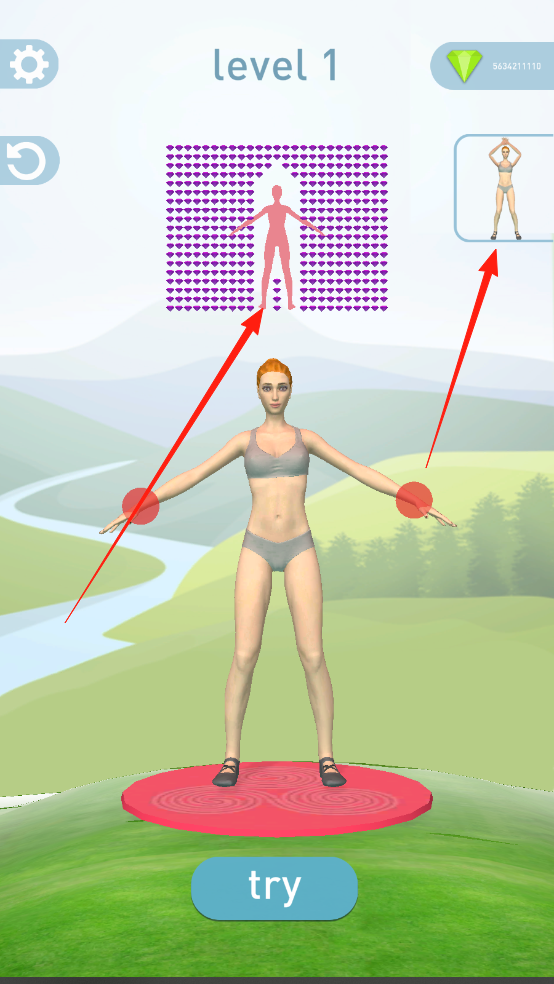 1、交互操作方式:點(diǎn)擊屏幕選擇動作類型,滑動調(diào)整身體角度,長按保持姿勢,通過組合不同操作完成復(fù)雜瑜伽任務(wù)。