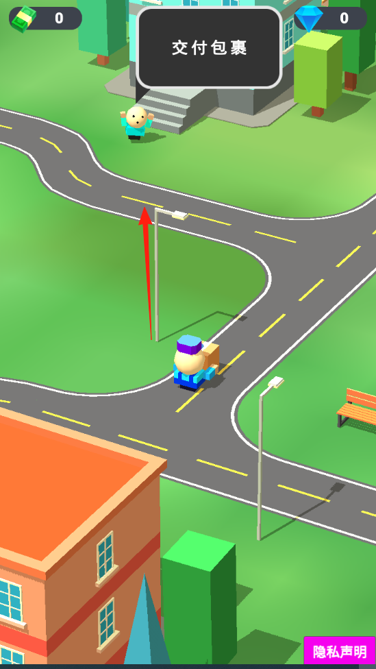 2、配送流程沿道路行駛,按“交付包裹”指引,將包裹送到指定地點(diǎn)(人物處)。