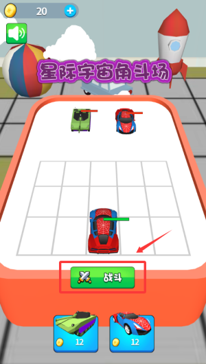 1、點(diǎn)擊戰(zhàn)斗按鈕,消耗小車開(kāi)啟星際對(duì)戰(zhàn)。
