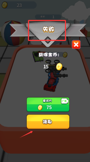 3、失敗后領(lǐng)取15金幣,或花費(fèi)75金幣購(gòu)買嘗試藥繼續(xù)。