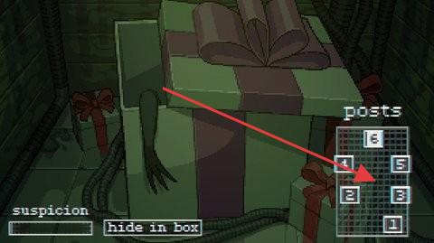1、進(jìn)入場景,關(guān)注左下角“suspicion”條,遇敵人靠近,及時點(diǎn)【hide in box】躲進(jìn)箱子,降低被發(fā)現(xiàn)風(fēng)險。