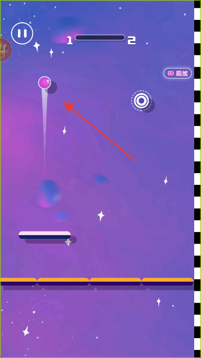 2、關(guān)卡內(nèi)長按屏幕發(fā)射繩索,操控粉色火柴人擺蕩,避過尖刺等障礙,抵達(dá)目標(biāo)平臺。