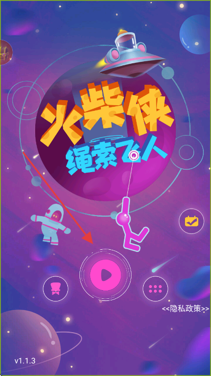 1、主界面點擊粉色播放按鈕,開啟【火柴俠繩索飛人】太空冒險。