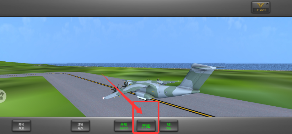 1、在游戲界面中,點(diǎn)擊下方“開始”按鈕,進(jìn)入飛機(jī)的駕駛操作。