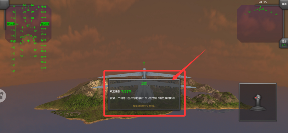 3、場(chǎng)景加載完成后,按提示了解飛行操作,準(zhǔn)備操控飛機(jī)完成訓(xùn)練任務(wù)。