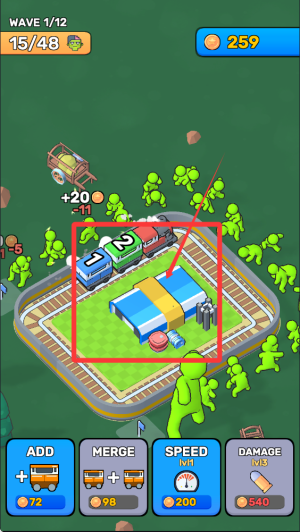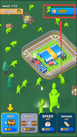 1、基礎(chǔ)玩法圍繞列車車廂的添加和升級(jí)展開,玩家需要合理配置武器裝備來強(qiáng)化戰(zhàn)力,同時(shí)防御基地免受僵尸攻擊。