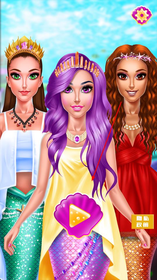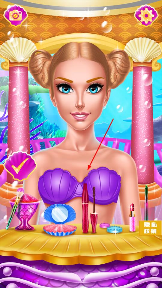 1、進(jìn)入游戲后首先選擇心儀的美人魚公主形象,點(diǎn)擊美妝臺(tái)挑選眼影、腮紅等色彩道具,滑動(dòng)屏幕為公主涂抹漸變妝容,打造靈動(dòng)眼妝與珊瑚色唇彩。