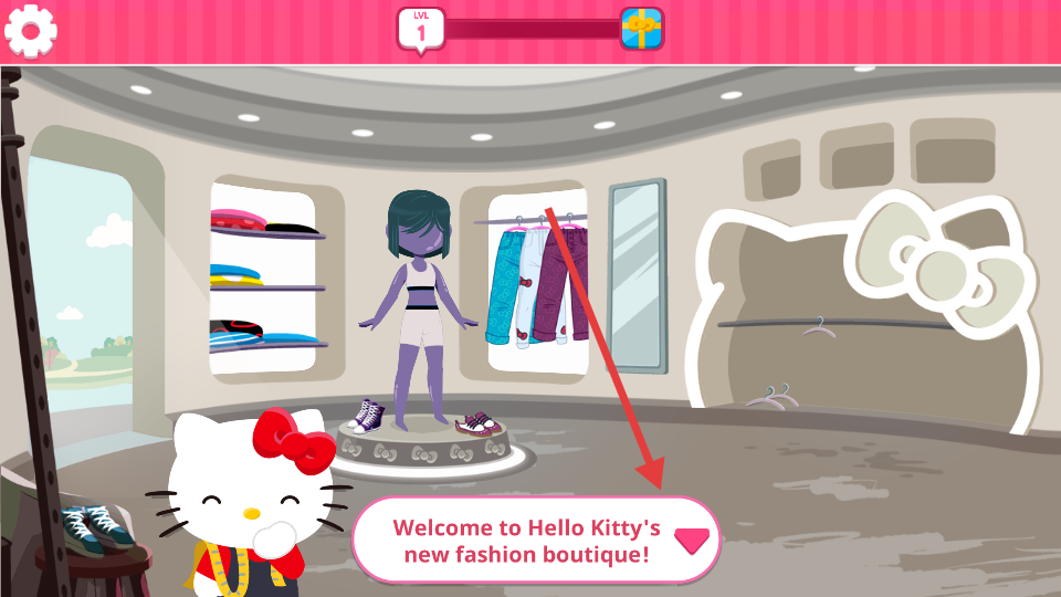 1、點(diǎn)擊服裝店貨架挑選單品,拖拽到凱蒂貓身上立即看到搭配效果。
