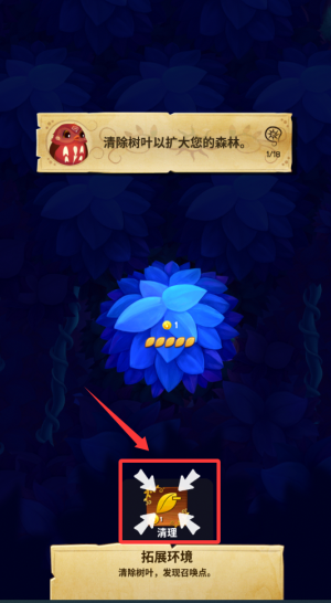 2、點(diǎn)擊清理按鈕清除樹葉,完成1/19任務(wù)進(jìn)度。