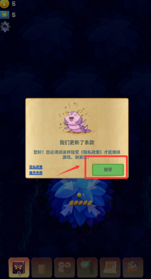 1、閱讀隱私政策后,點(diǎn)擊綠色接受按鈕繼續(xù)游戲。