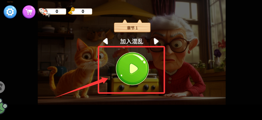 1、打開游戲,點(diǎn)擊頁面中綠色按鈕,將扮演一只肥貓,盡情地享受拆家的歡樂。